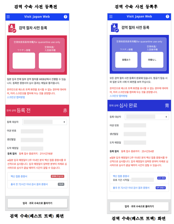 반드시 모든 사전 수속 등록 이후 캡처본 저장하여 입국 심사 및 수속을 밟을 때 어려움 없이 입국하여 즐거운 일본 여행 되시길 바라겠습니다.